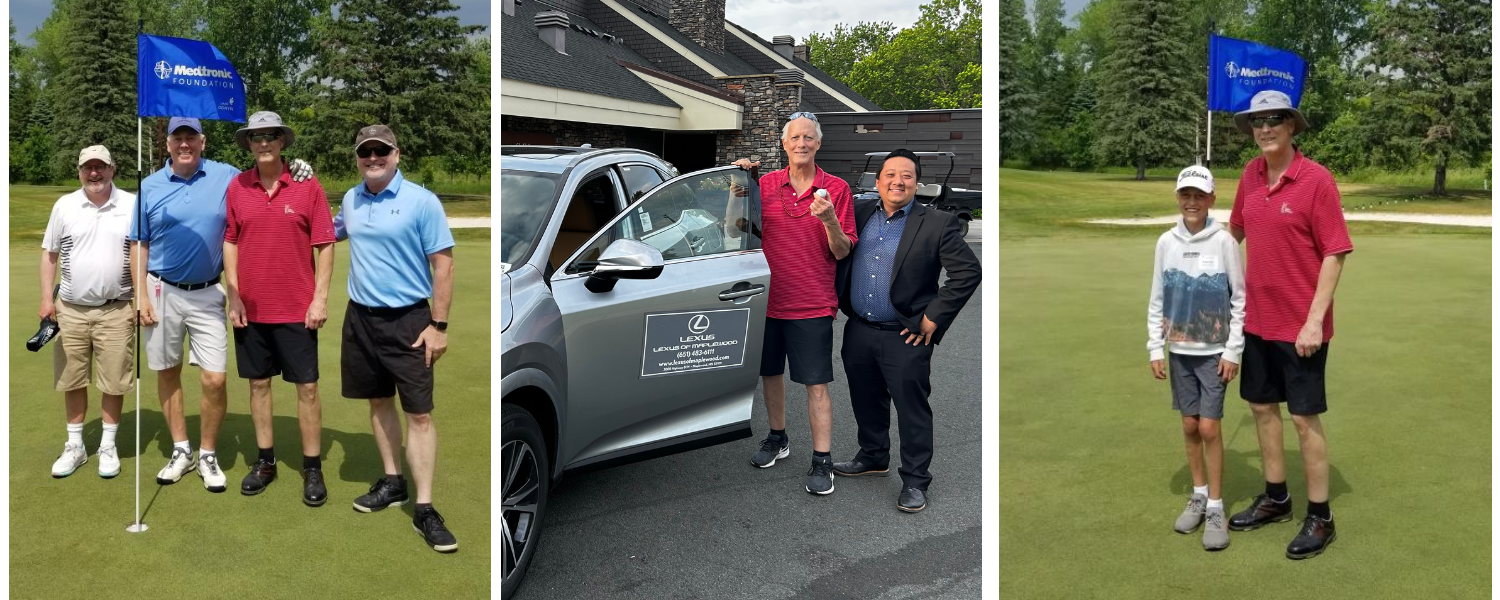 Our 22nd annual golf tournament turned out to be wonderful a day full of ‘firsts’! We hosted a pickleball tournament for the first time. We welcomed a ton of first-timers who had never before attended a Camp Odayin fundraiser. Everyone in attendance was in agreement that the most exciting first was a hole-in-one by Brad Forrest on hole #6 where a shiny new car from Lexus of Maplewood sat at the green! Brad, who is a heart transplant recipient won a two year lease and landed us our first Whole Heart feature on KARE 11 News.